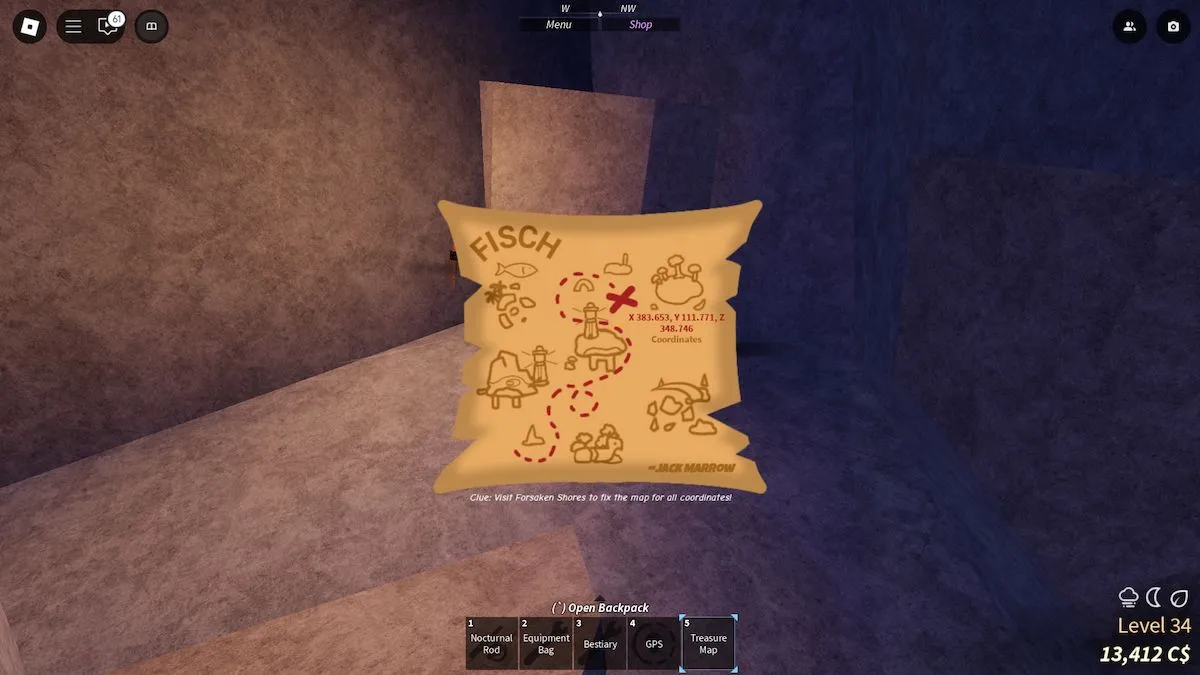 Here, you'll encounter Jack Marrow - a witty nod to a familiar pirate name. Jack Marrow offers to fix your incomplete map for 250C$ .