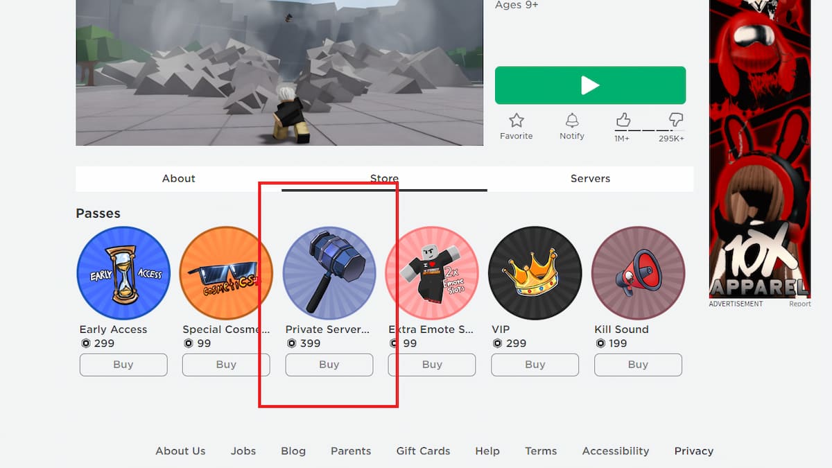 您可以从游戏内商店购买399 Robux的最强战场的私人服务器。与其他游戏不同,这是一个永久的功能,您无需每个月续订它。另外,您可以使用礼物选项将通行证送给您的朋友。